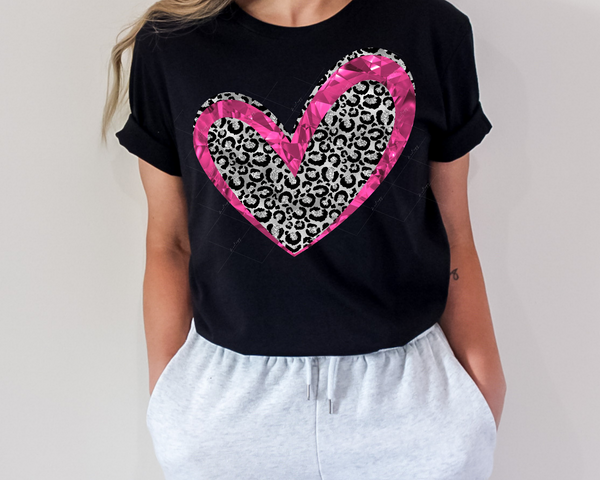 Heart with black and silver leopard outlined in jeweled hot pink design 1549 DTF TRANSFER