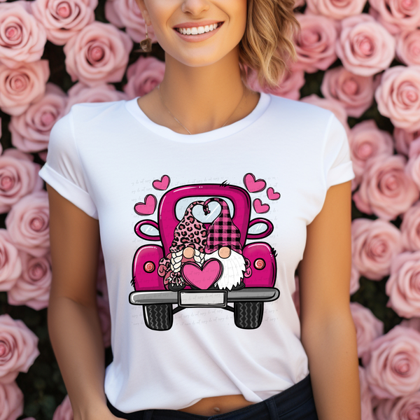 Valentine Gnome With Pink Hearts and Truck Leopard and Plaid Hat 116104 DTF Transfer