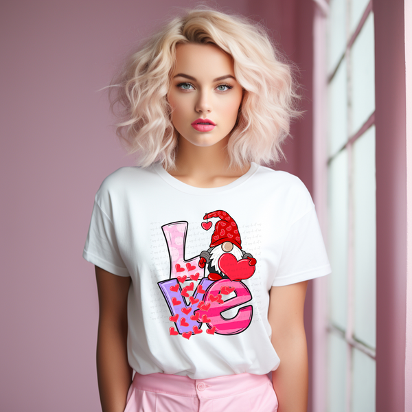Love Pink with Gnome and Hearts 116075 DTF Transfer