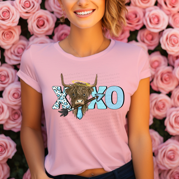 Xoxo Highland Cow Blue Font 116880 DTF Transfer