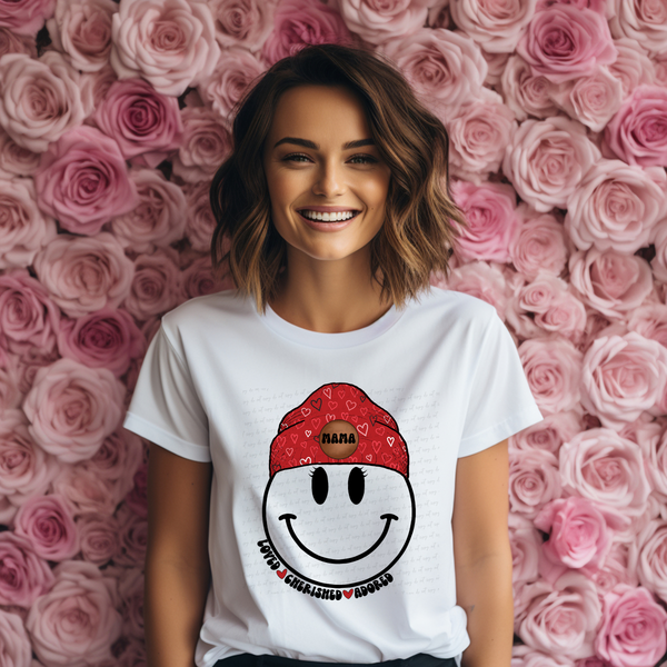 Loved Cherished Adored Mama Smiley Beanie 116978 DTF Transfer