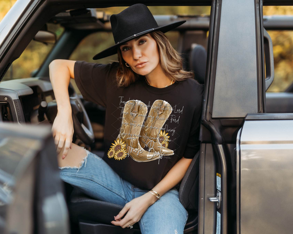 Those Boots (black handwriting, poem, boots, sunflowers) 68426 DTF TRANSFER