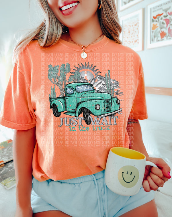 Just wait in the truck teal truck DTF TRANSFER
