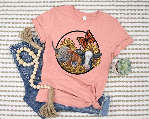 Trio Cows with sunflowers and butterfly circle 1166 DTF TRANSFER