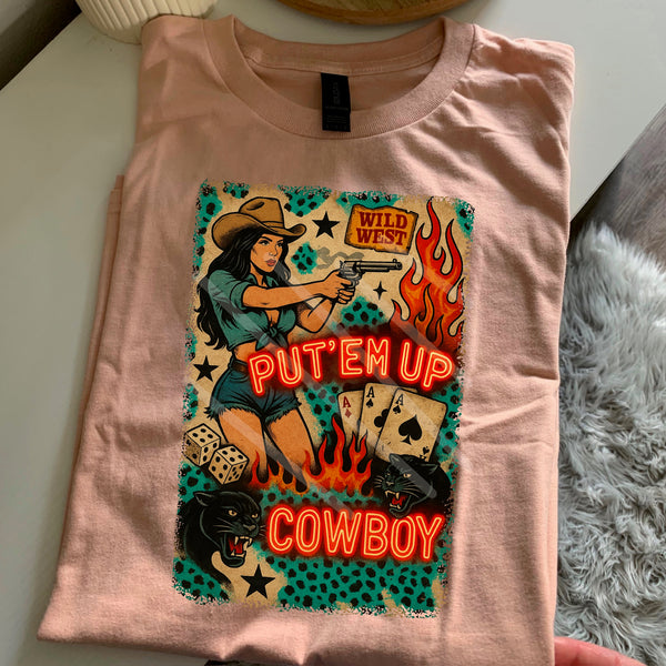 Put Em Up Cowboy with jaguar Cowgirl 110680 DTF transfer