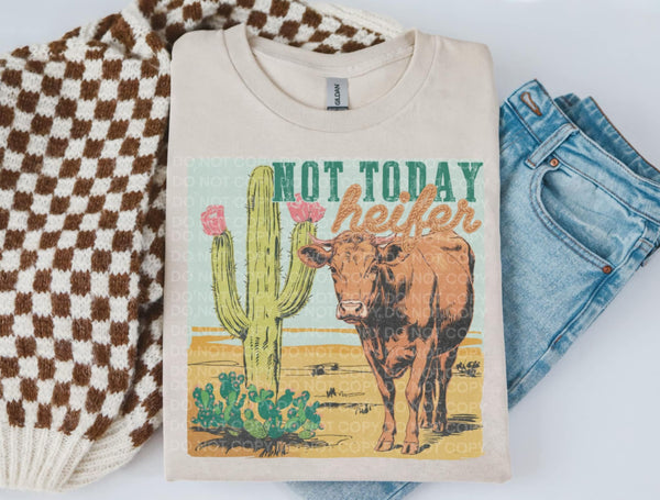 Not Today Heifer with cow cactus and boots SCG DTF transfer