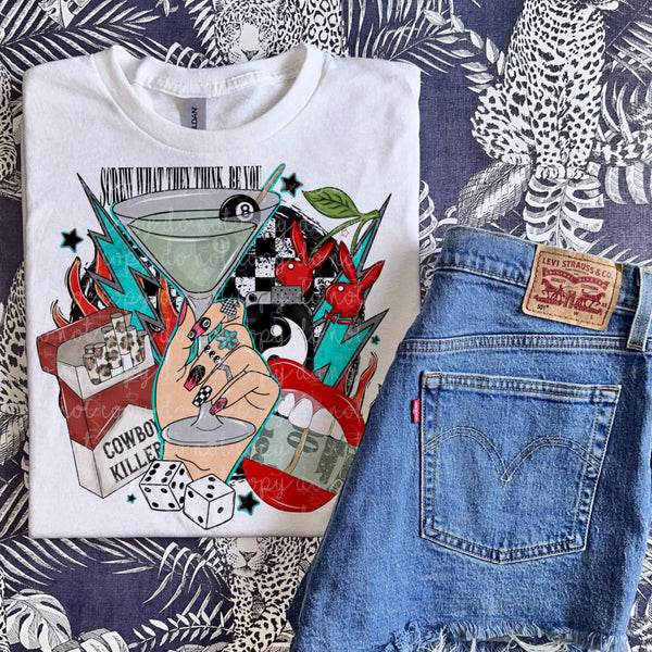 Cowgirl Martini with dice and cigarettes MMD DTF transfer