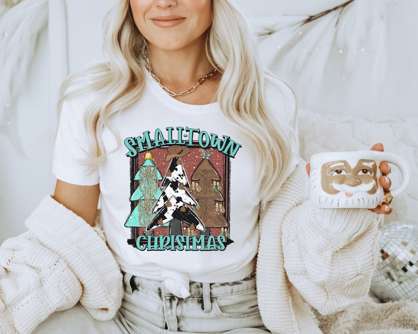 Smalltown Christmas Western Tree Cow Print Cowboy Hat 1106 DTF TRANSFER