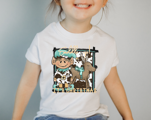 Saddle Up It's Christmas Male Elf Reindeer Teal 112383 DTF TRANSFER