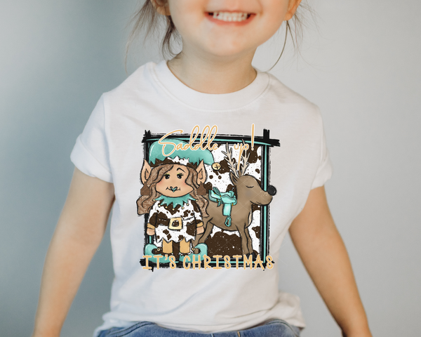 Saddle Up It's Christmas Female Elf Reindeer Teal 1105 DTF TRANSFER