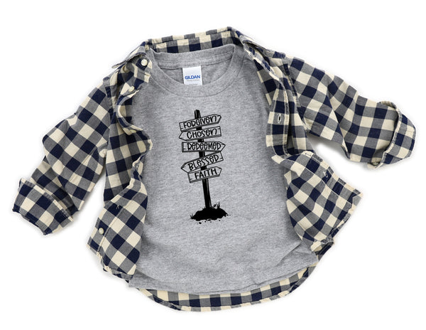 Forgiven chosen redeemed blessed faith YOUTH 8" TALL screen print transfer