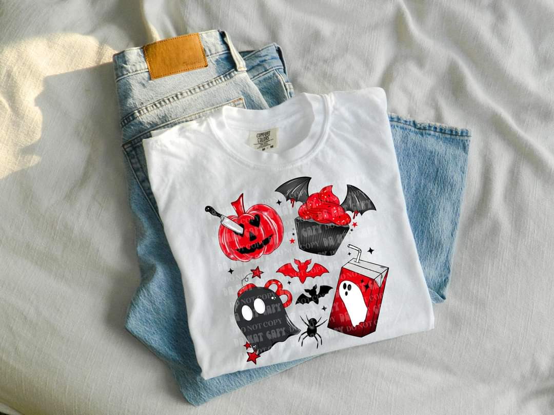 Red pumpkin juice and cupcake with ghost (CSC) DTF TRANSFER