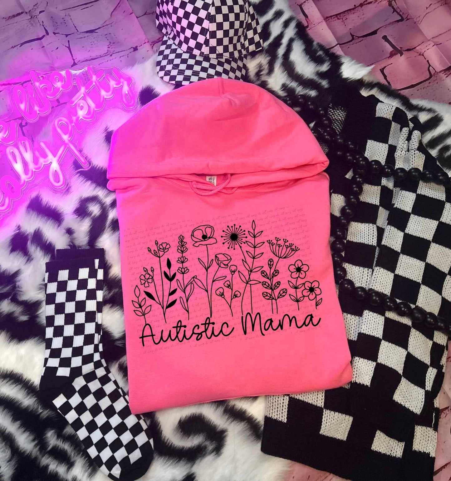 Autism mama black with flowers (CSTAGE) 31379 DTF transfer