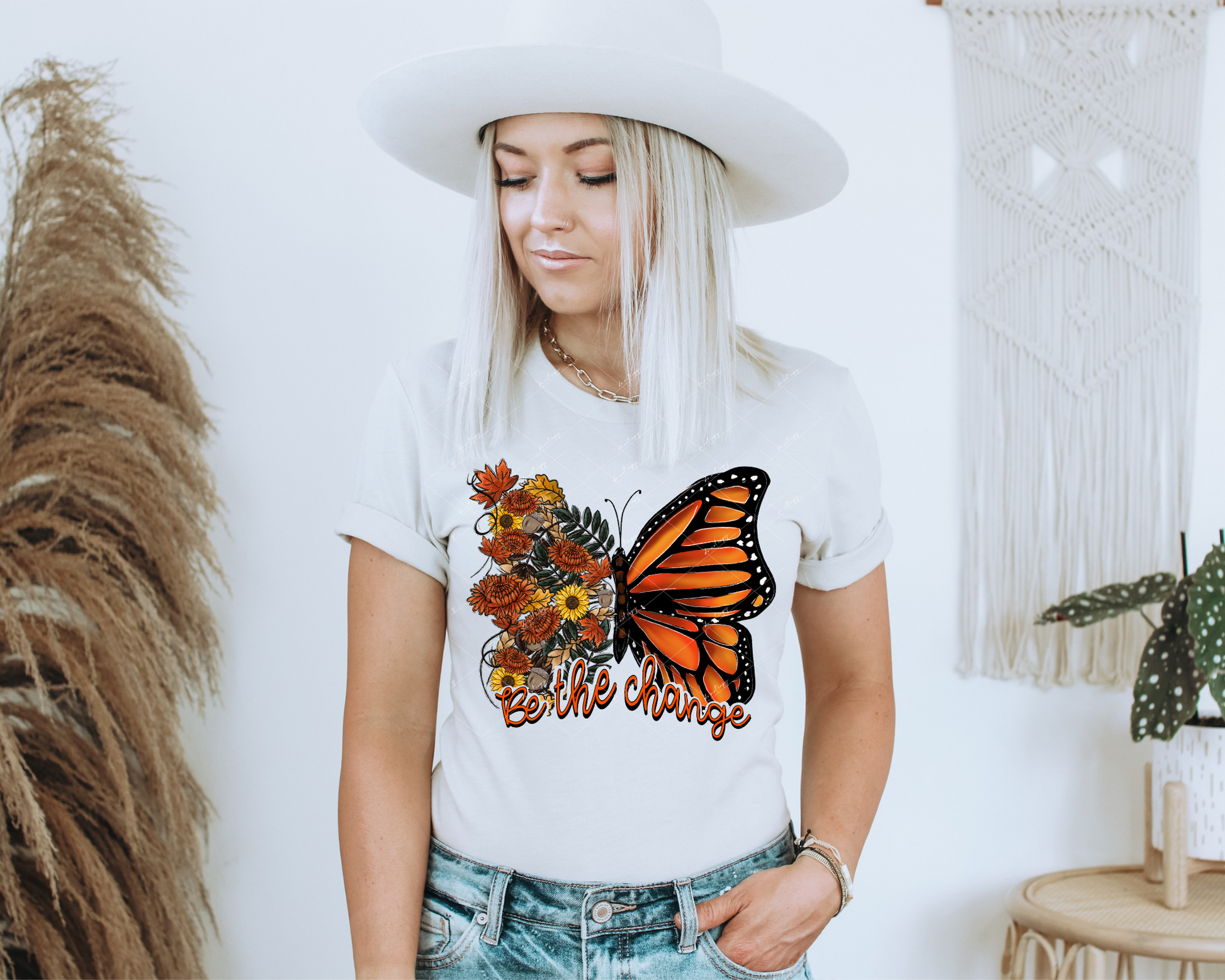 Be the change (bright oranges & yellows, butterfly and floral) 1227 DTF TRANSFER