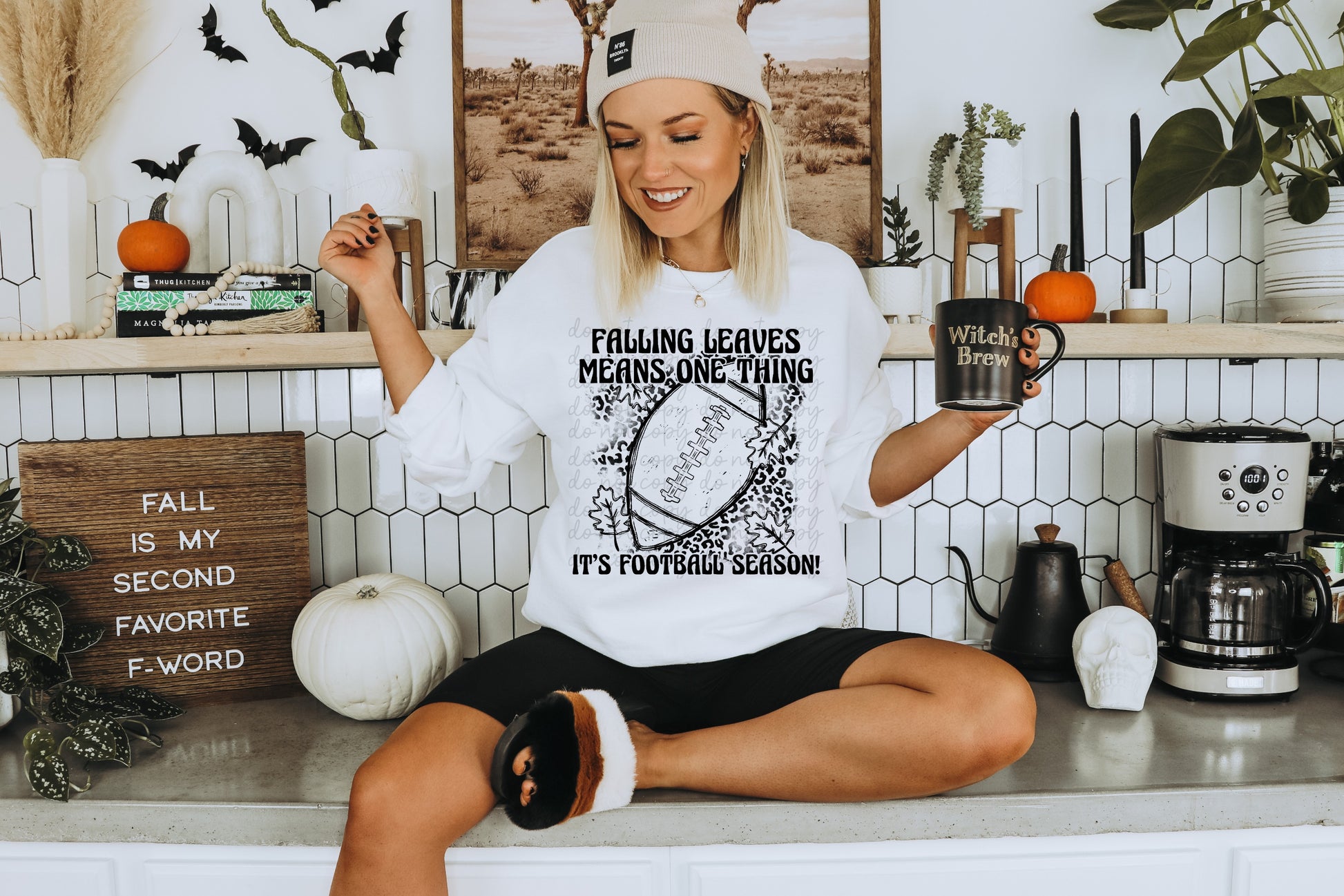 Falling leaves means one thing It's football season BLACK screen print transfer