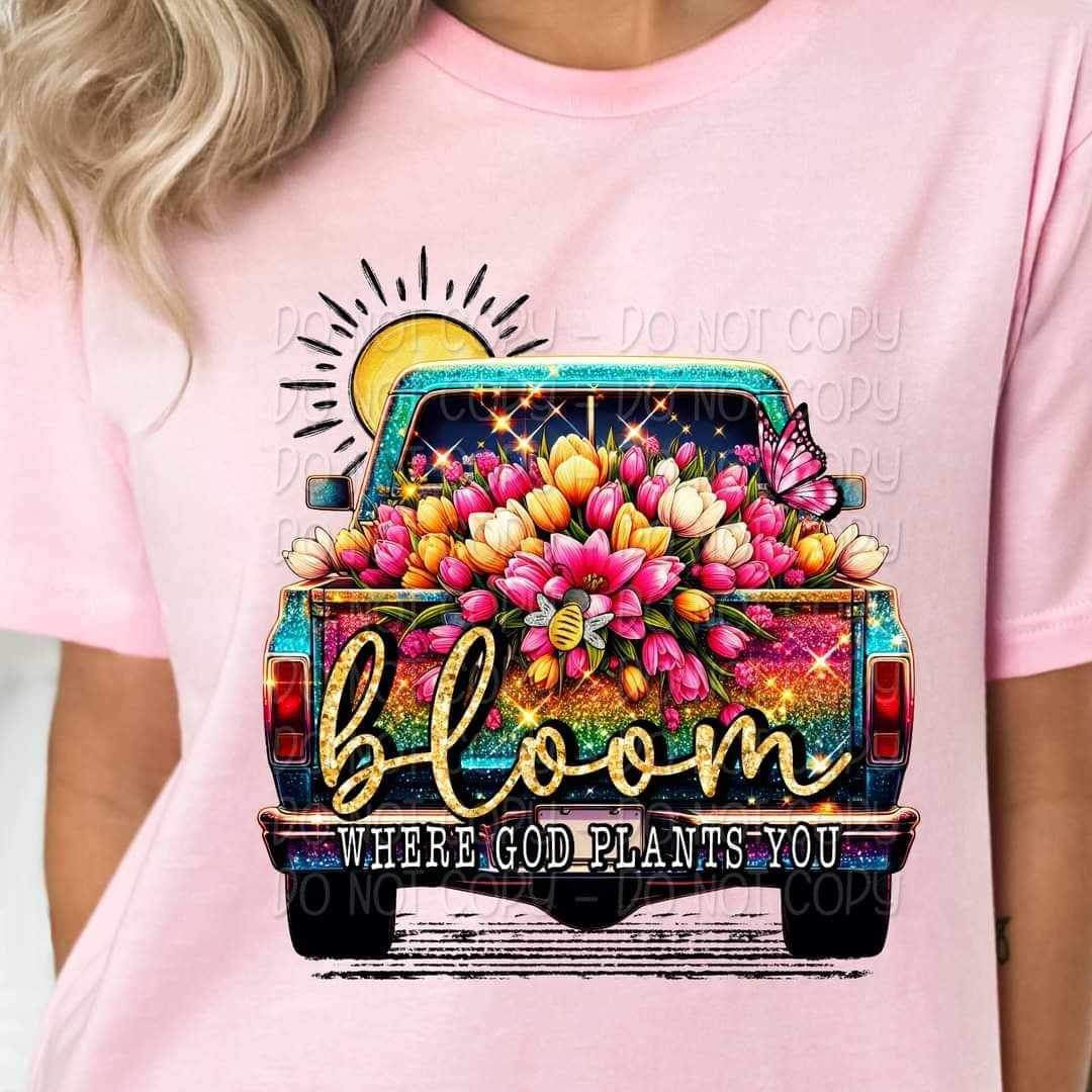Bloom where god plants you truck with flowers 20950 DTF transferin