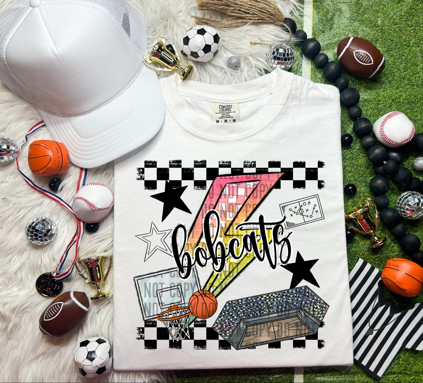 Bobcats Checkered Lightning Bolt Basketball 66944 DTF transfer