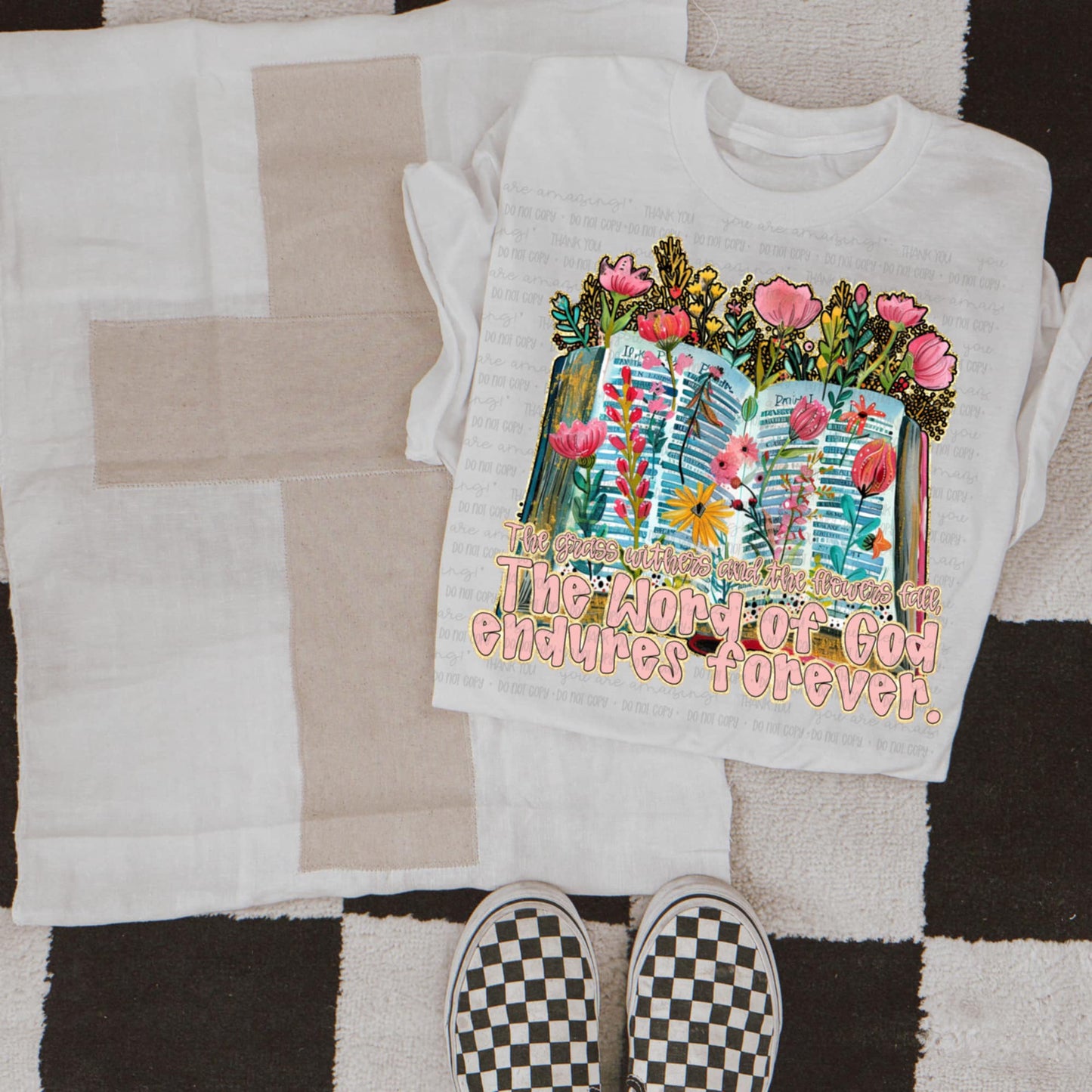 The grass withers and the flowers fall the word of god endures forever 100370 DTF transfer