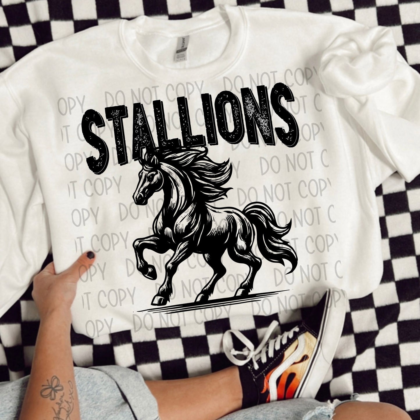 Stallions horse black/white outline DTF transfer