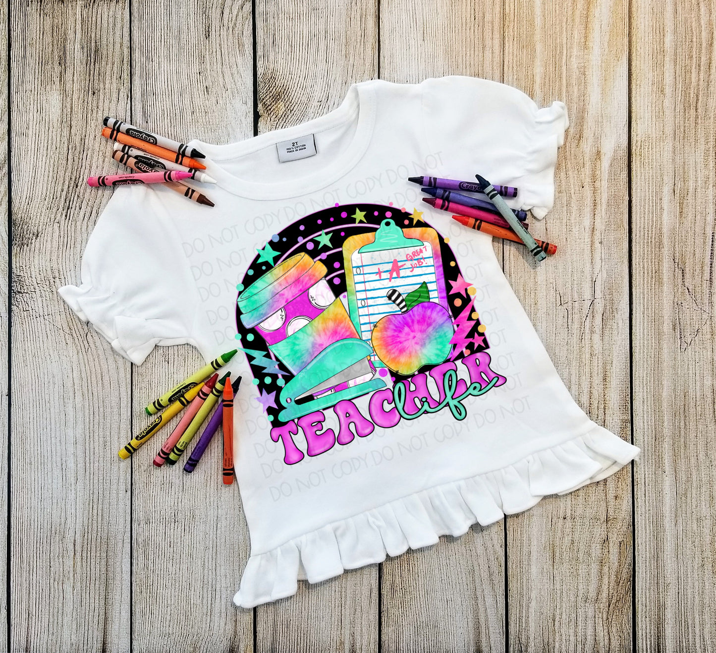 Teacher life LF colors school supplies DTF TRANSFER
