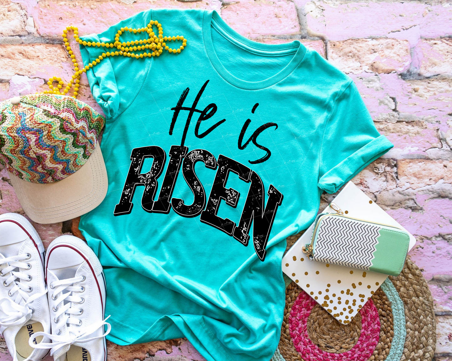 He Is Risen (black block distressed & black marker lettering) 1970 DTF TRANSFER