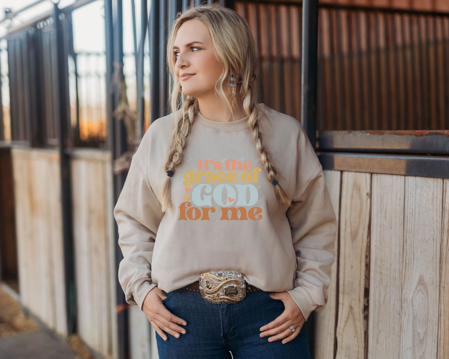 It's The Grace Of God For Me (70's vibe lettering, coral, gold, blue, terra cotta) 3003 DTF TRANSFER