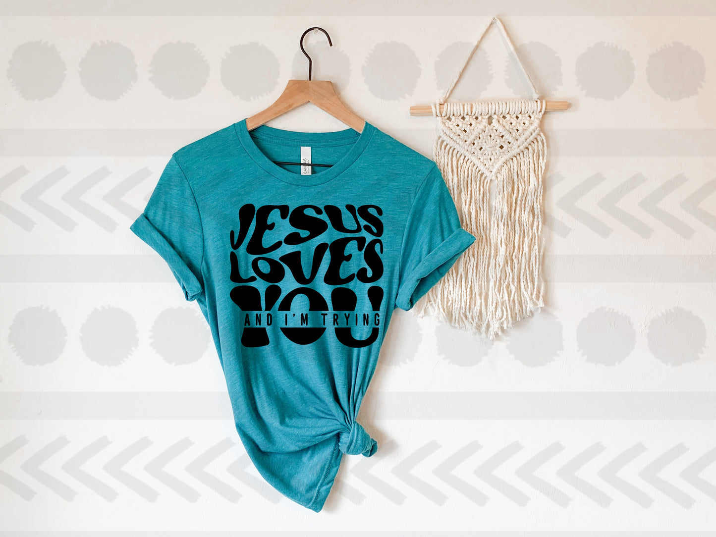 Jesus loves you and im trying BLACK 18685 DTF transfer