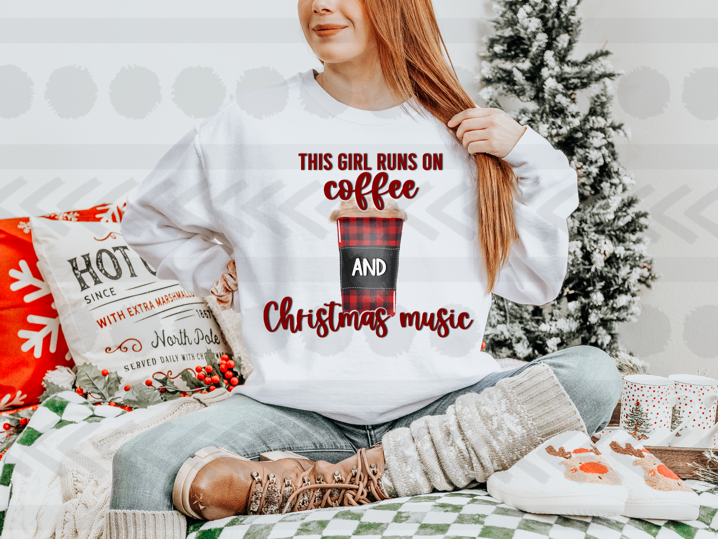 This girl runs on coffee and christmas music PLAID 14725 DTF transfer