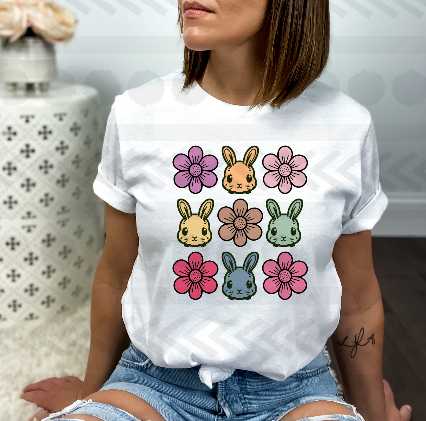 Bunny and flower collage 18625 DTF transfer