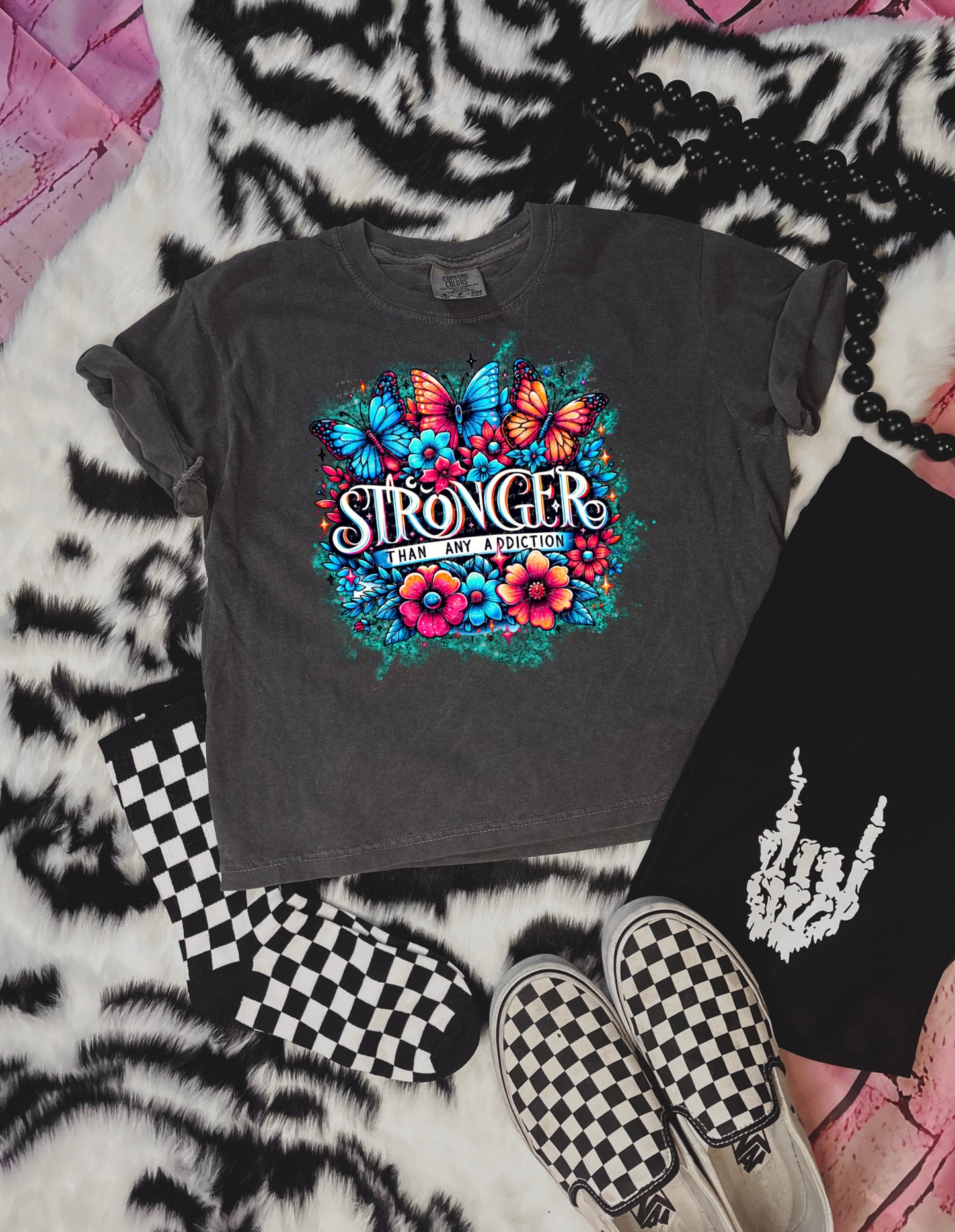 Stronger than my addiction butterflies florals 28176 DTF transfer
