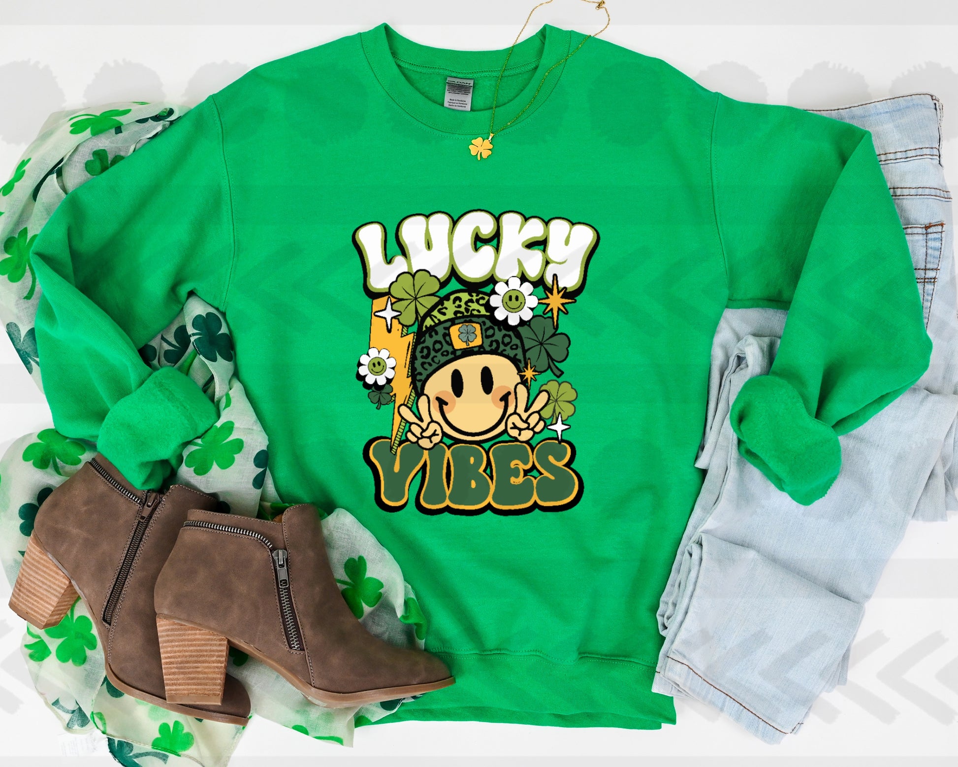 Lucky vibes shamrock smiley 18739 DTF transfer