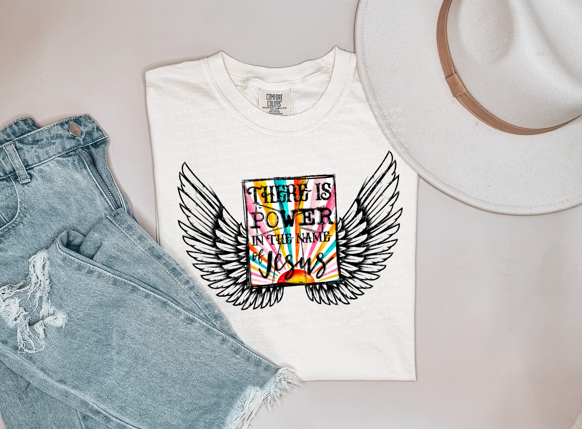 There is power in the name of jesus angel wings 18882 DTF transfer
