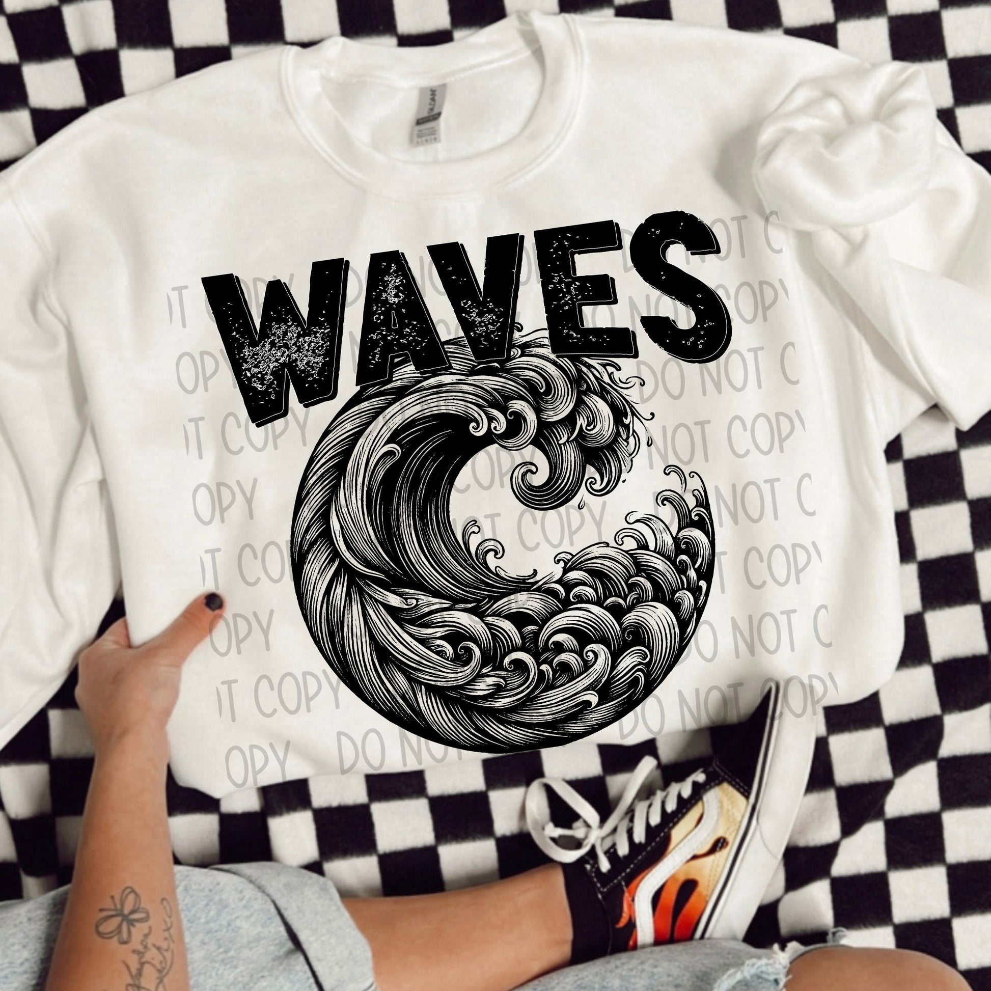 Waves black/white outline DTF transfer