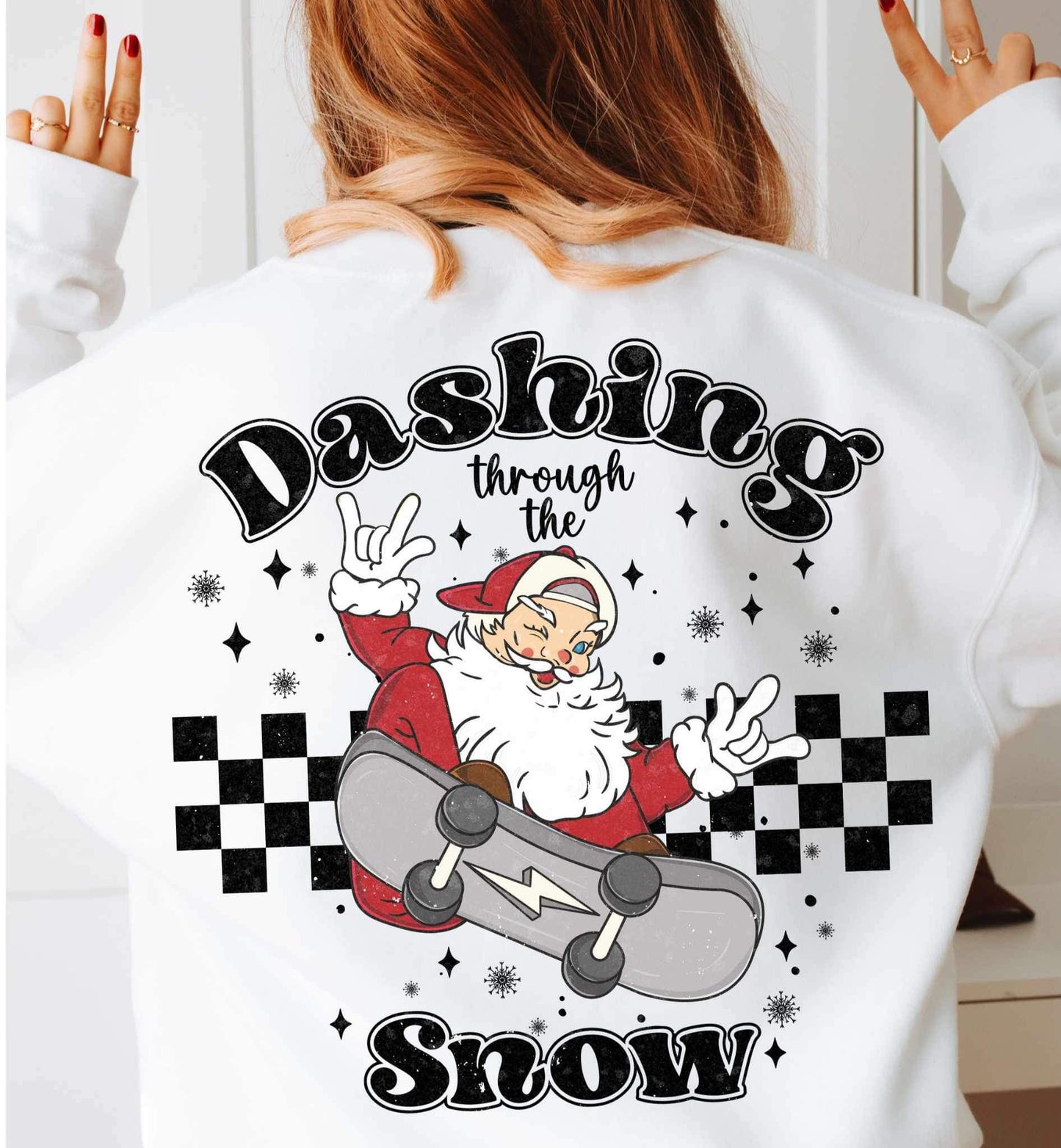 Dashing through the snow (retro santa on skateboard) 16165 DTF Transfer