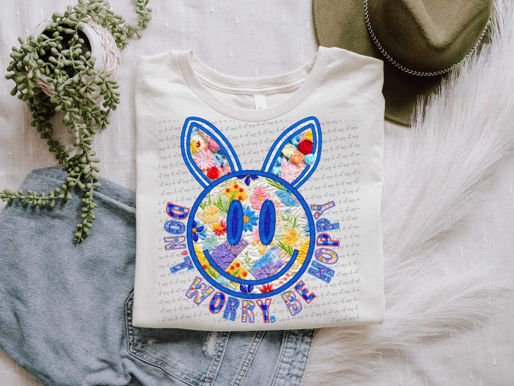 Dont worry be hoppy floral smiley bunny 21669 DTF transfer