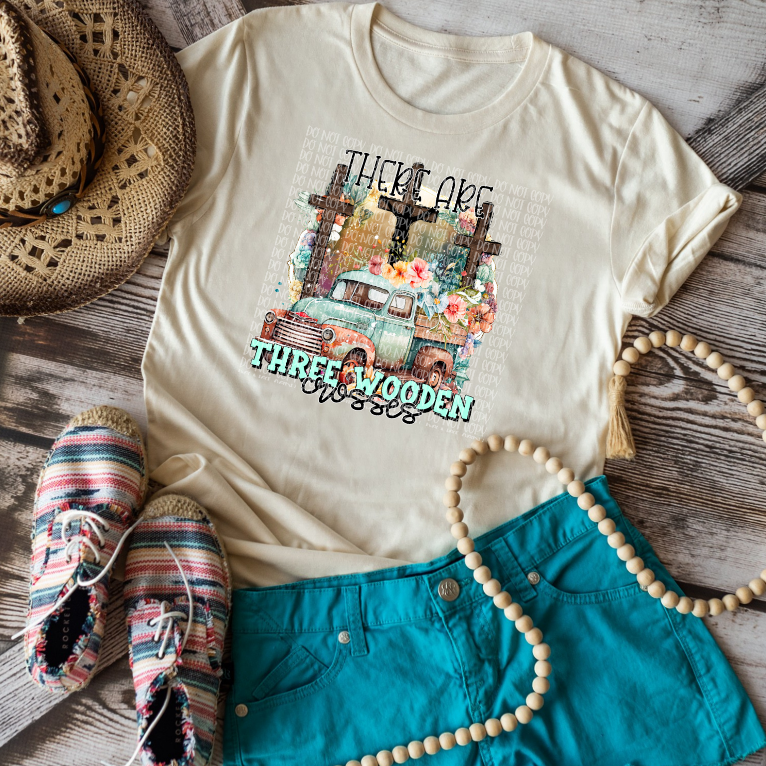 There are three wooden crosses (truck) DTF TRANSFER