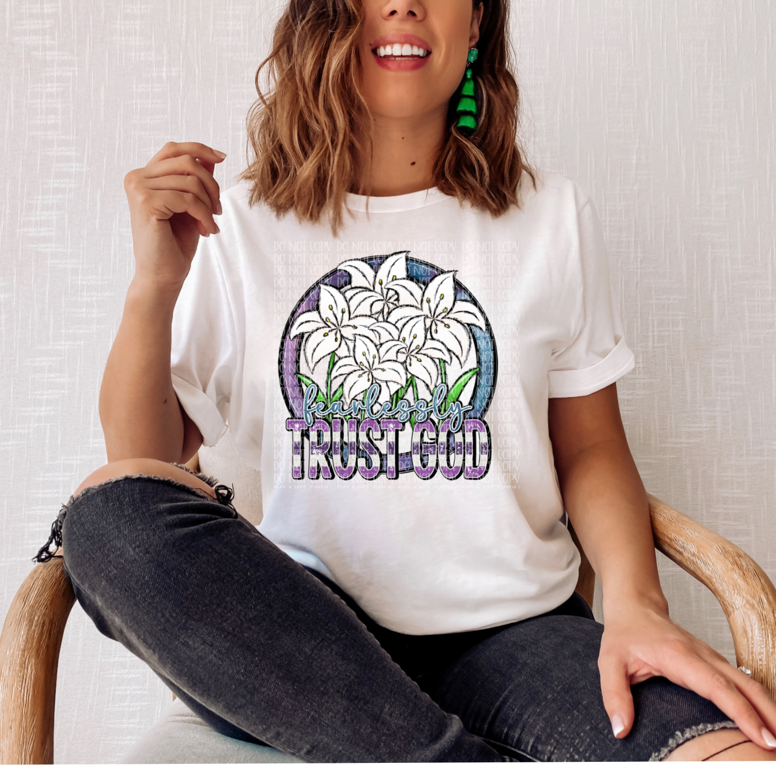 Fearlessly trust God white flowers circle DTF TRANSFER