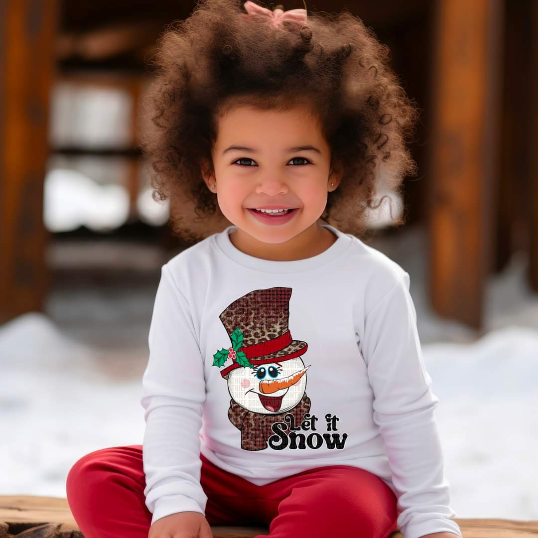 Let it snow snowman leopard hat DTF TRANSFER