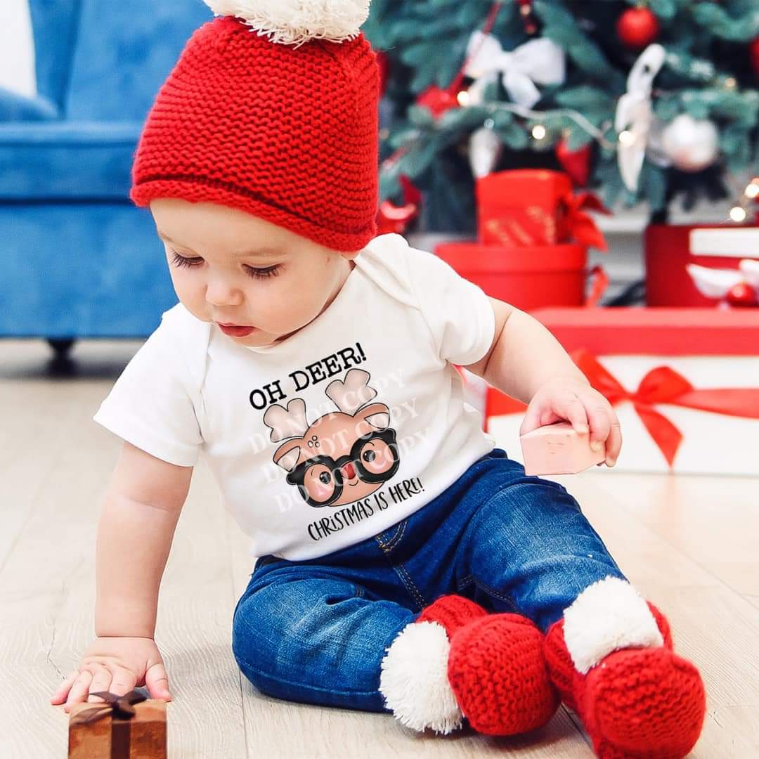Oh Deer! Christmas is here Male Deer with glasses 8591 DTF TRANSFER