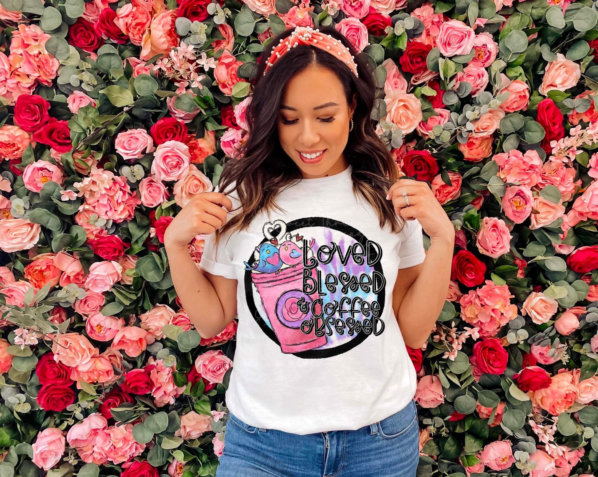 Loved blessed and coffee obsessed circle DTF TRANSFER