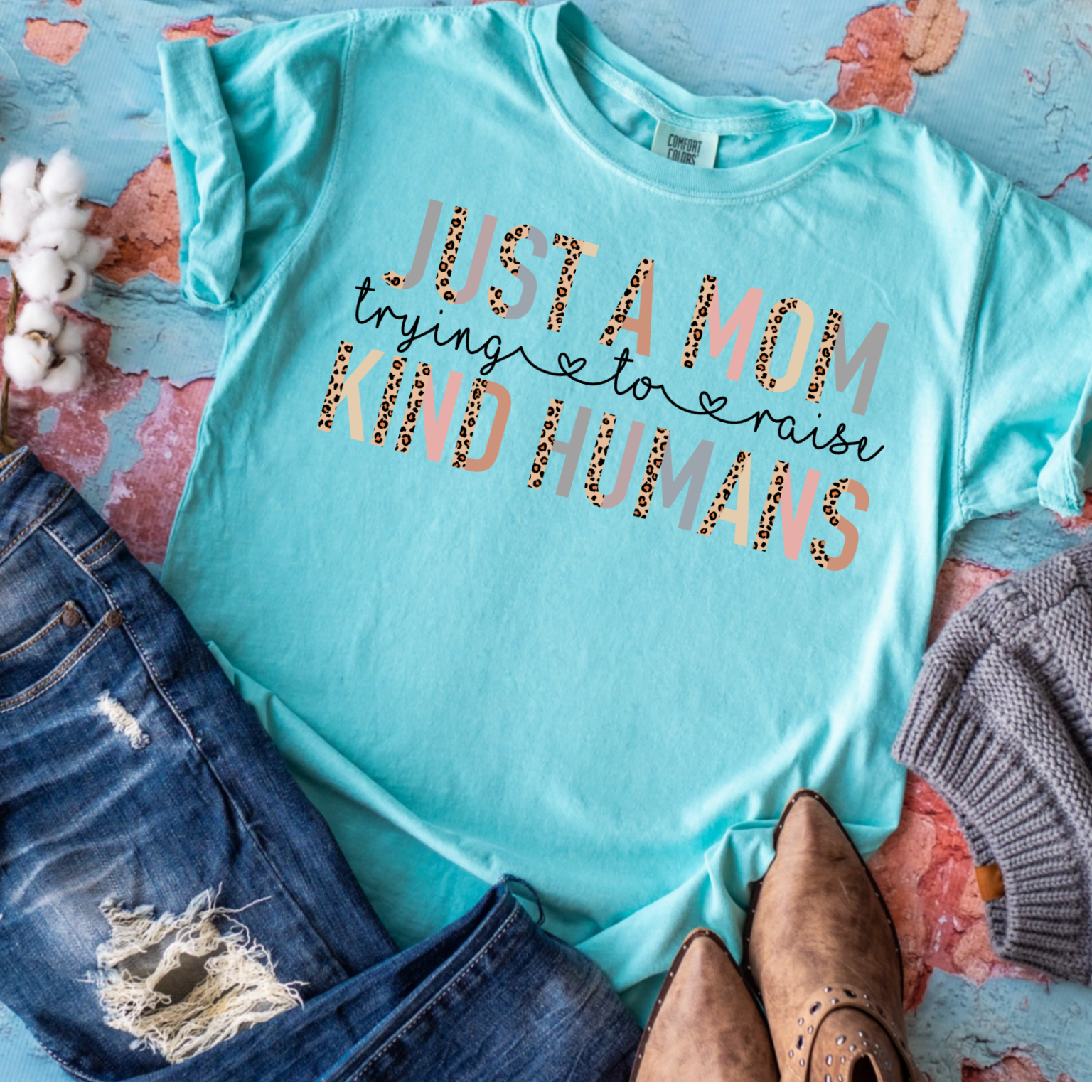 Just a mom trying to raise kind humans boho style colorful/leopard font 5103 DTF TRANSFER