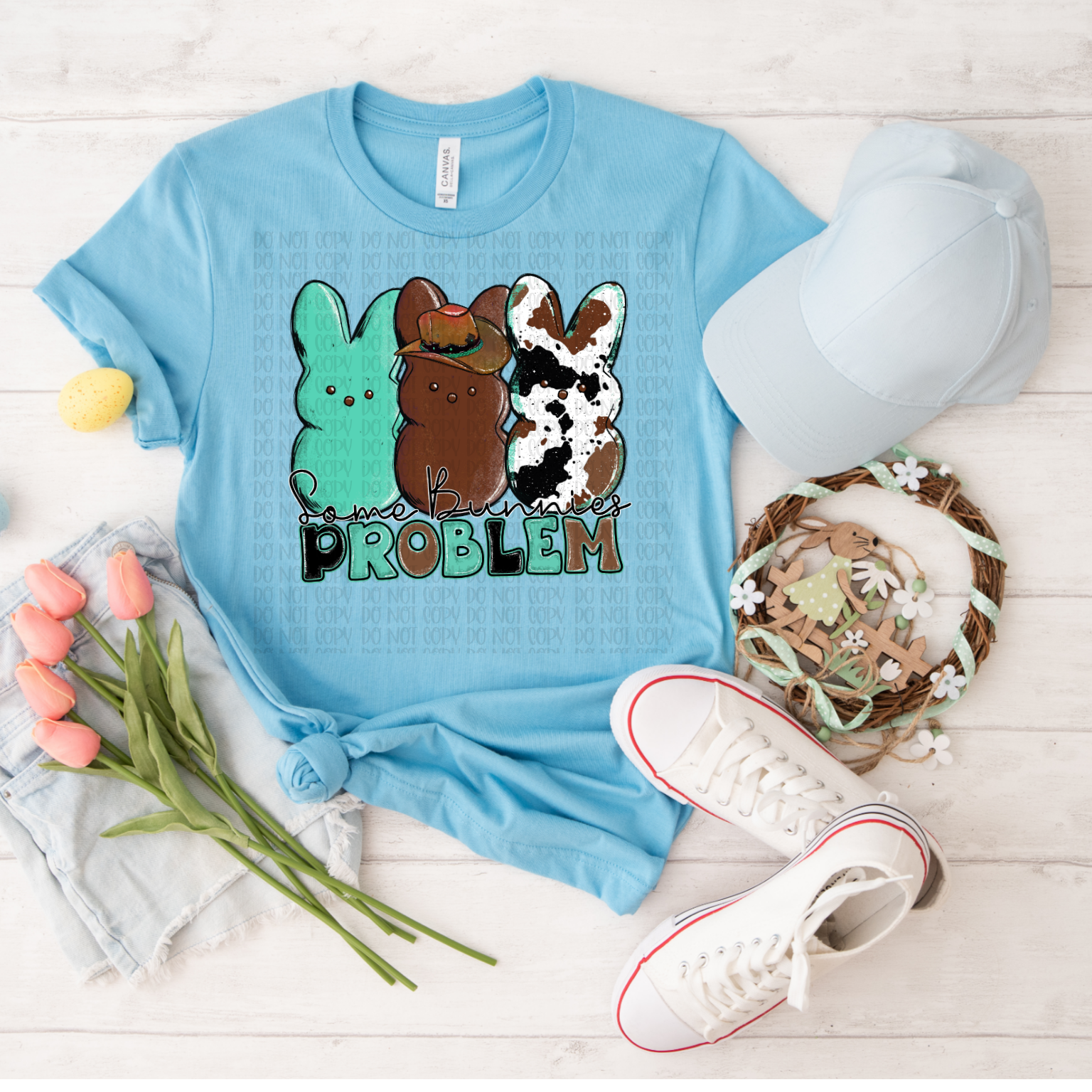 Some bunnies problem western cowhide and cowboy hat DTF TRANSFER