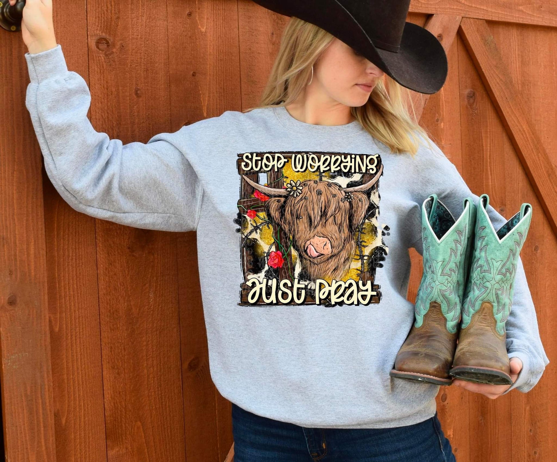 Stop worrying just pray shaggy cow DTF TRANSFER