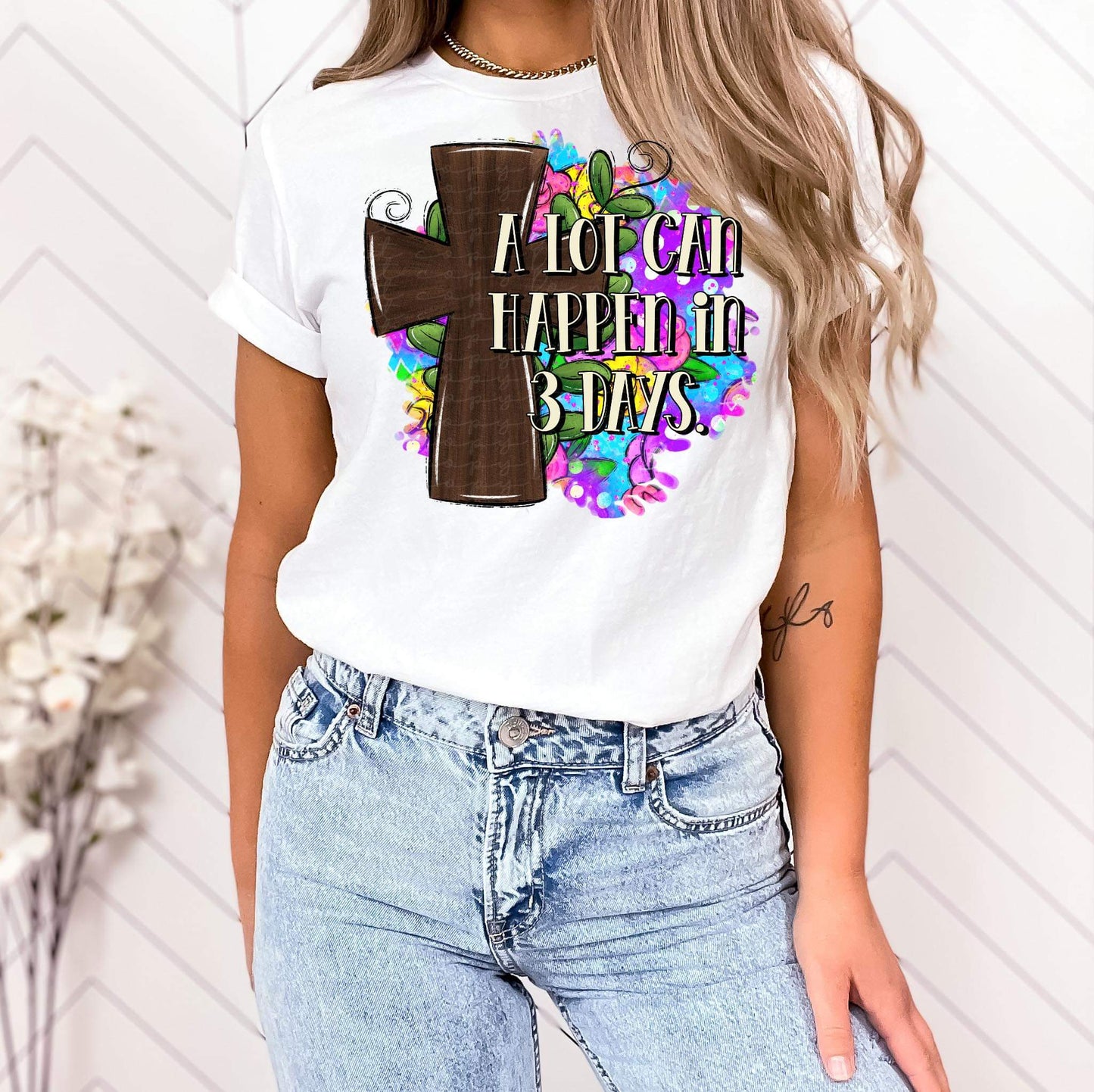 A lot can happen in 3 days brown cross colorful background DTF TRANSFER