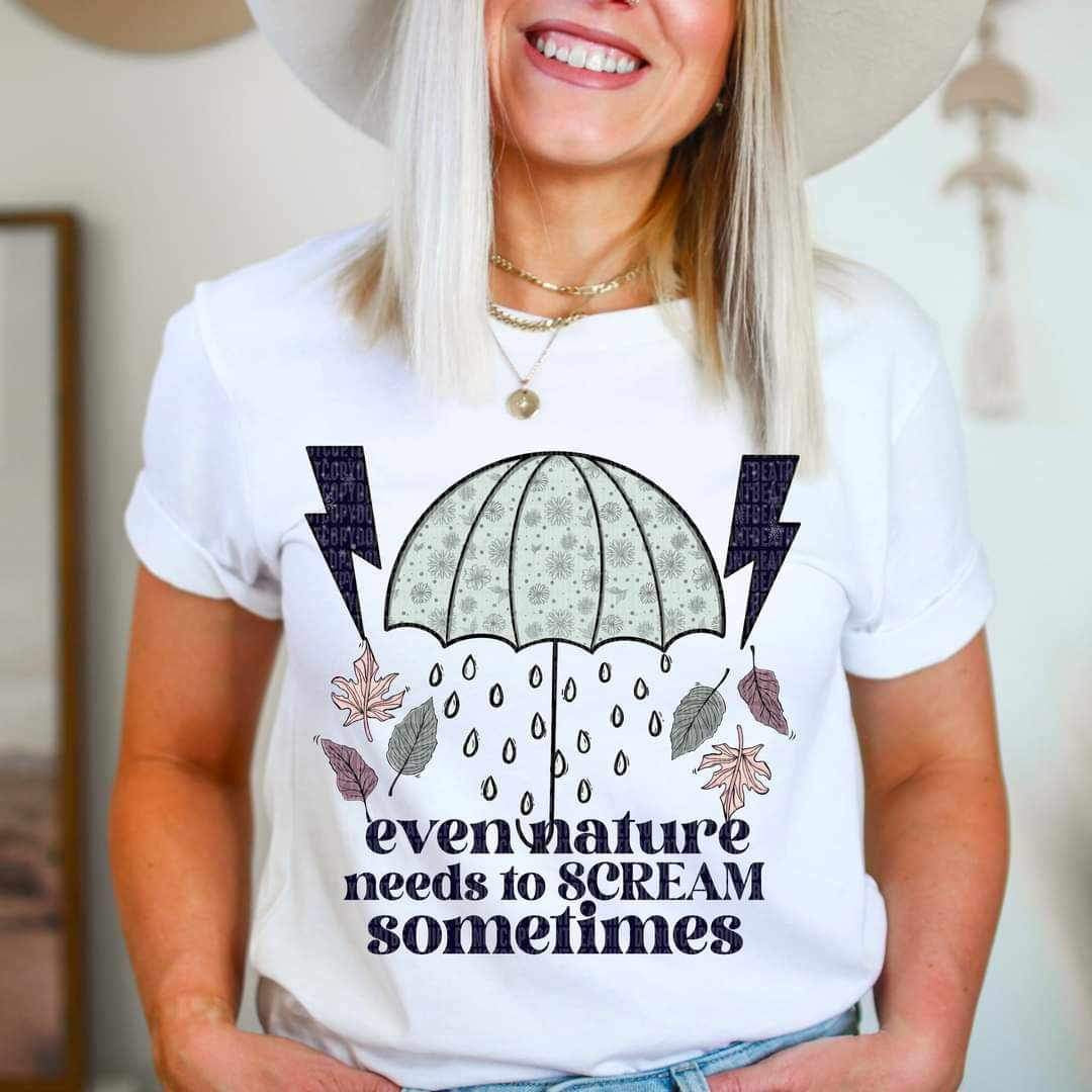 Even nature needs to scream sometimes (umbrella with rain, lightning bolts, and leaves) 11522 DTF TRANSFER