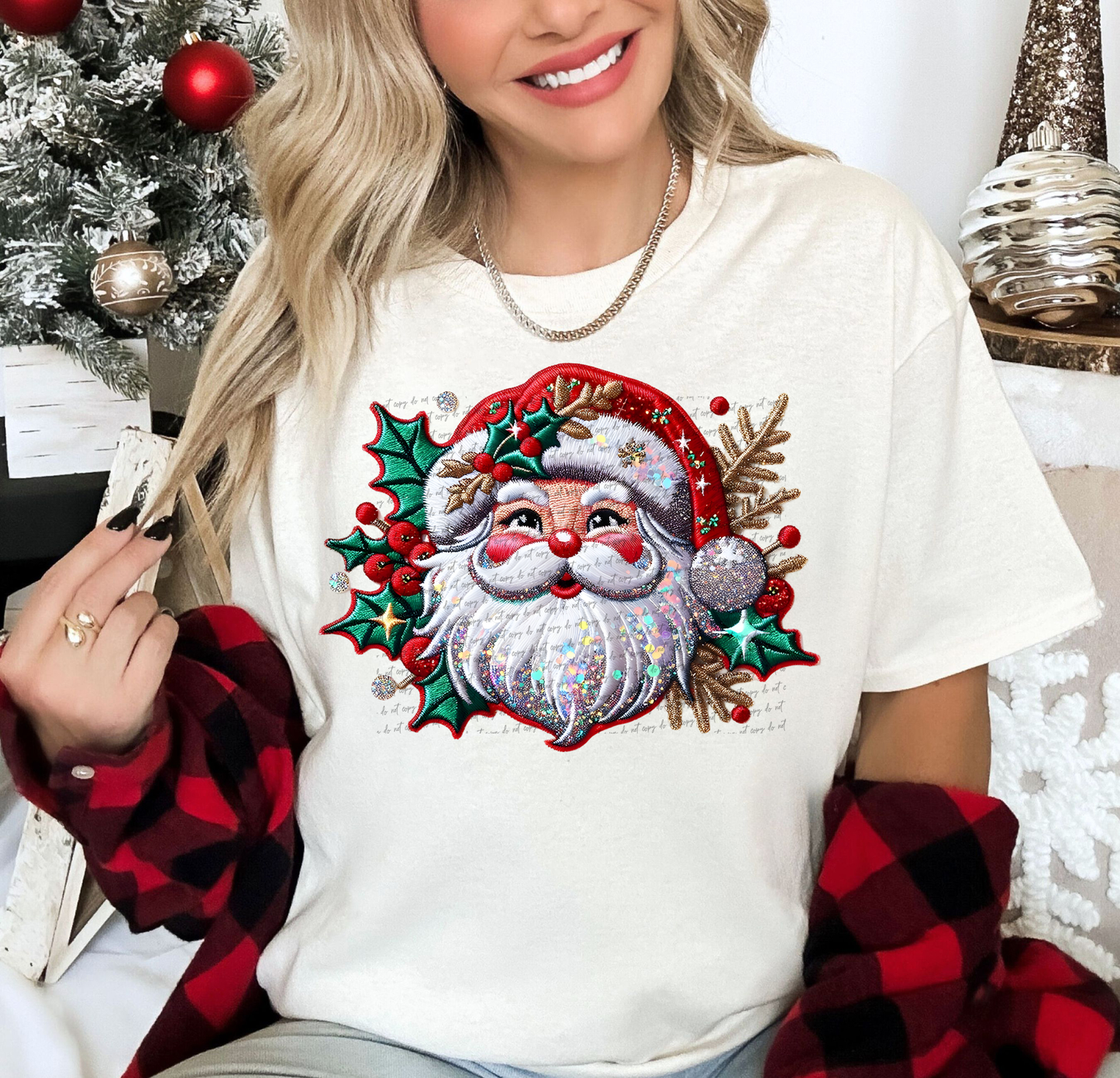 Faux Embroidery Stones Santa Red Hat Mistletoe 61101 DTF Transfer