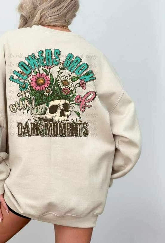 Flowers grow out of dark moments skellie with flowers 20563 DTF transfer