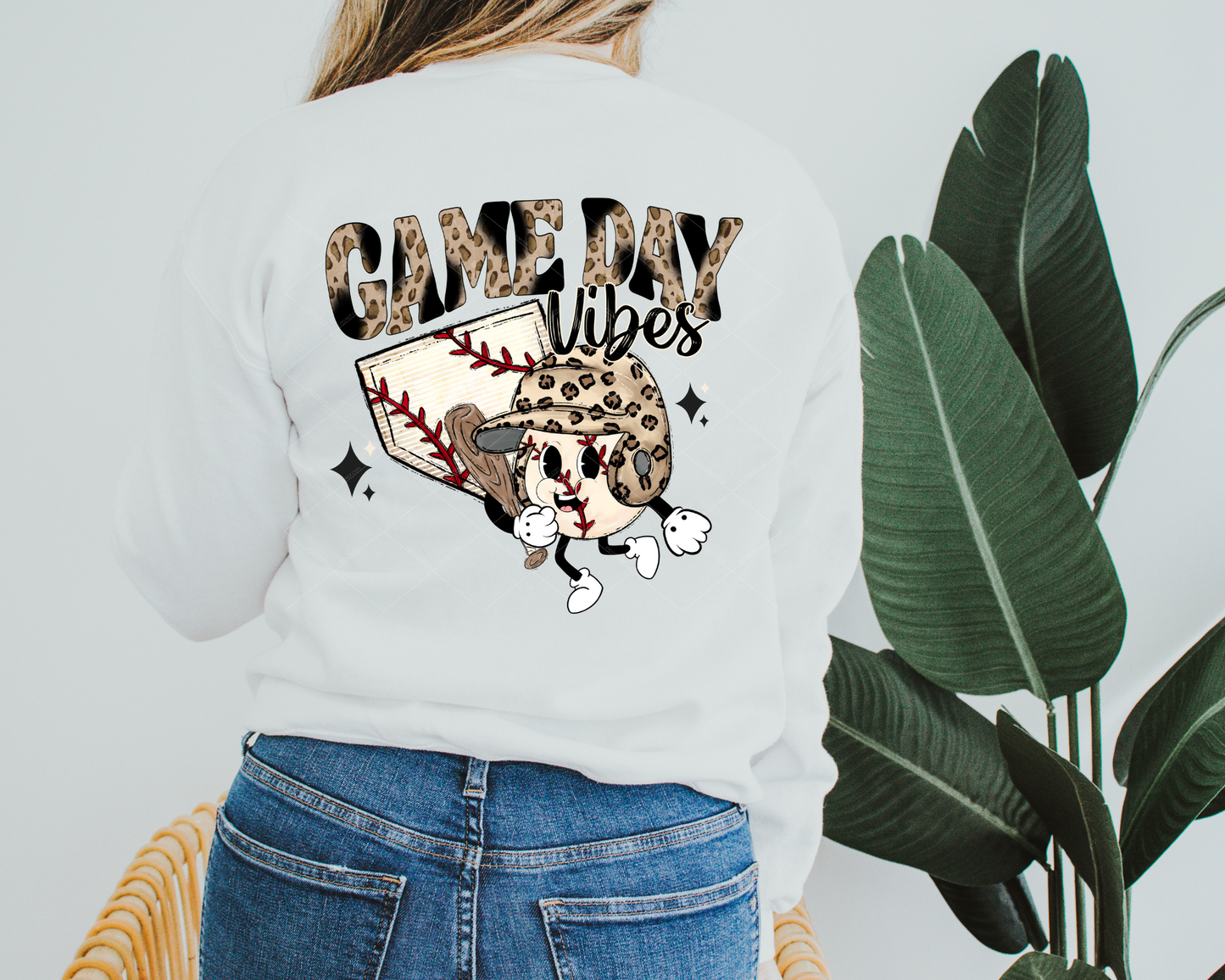 Game Day Vibes Baseball Guy with Leopard Helmut (Black Leopard Font) 090 DTF TRANSFER