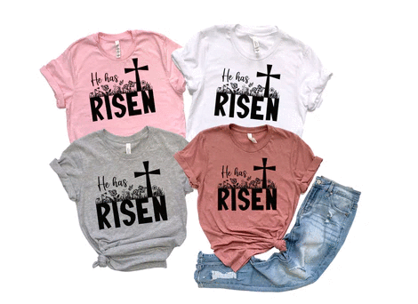 He Is Risen cross with florals BLACK DTF TRANSFER