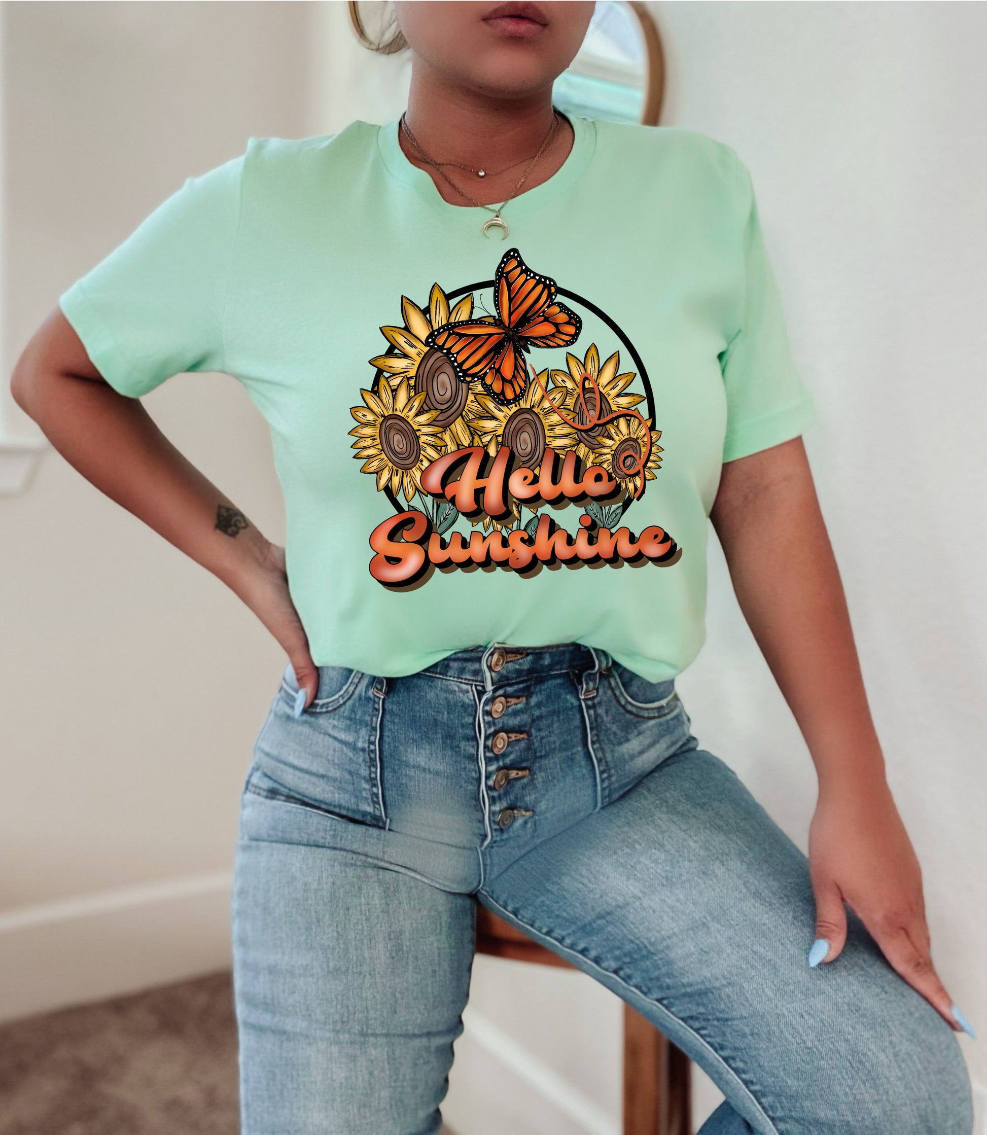 Hello sunshine (sunflowers and butterfly) HIGH HEAT screen print transfer
